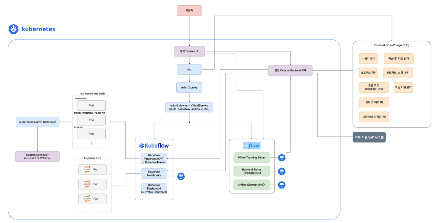 Kubeflow·MLflow를 통합하여 데이터→학습→모델 관리까지 전 과정을 자동화해 개발 생산성 향상.
